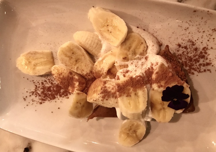 For appetizers we ordered the Grilled Aubergine & Tahini. It was so tasty and flavourful. They caramelized the aubergine with a miso glaze and topped it with toasted pine nuts, pomegranate seeds, sesame seeds and fresh micro basil. For the main course we had the Asparagus & Spinach Black Rice Risotto which contained asparagus, spinach and peas black risotto topped with salsa verde, pecan nut (replacement of parmesan) and rocket. It was so yummy!! For dessert we had the Banofee Pie which was a chewy nutty chocolate base with majdool date salted caramel topped with banana and coconut cream. It was alright, a bit too sweet for my taste.